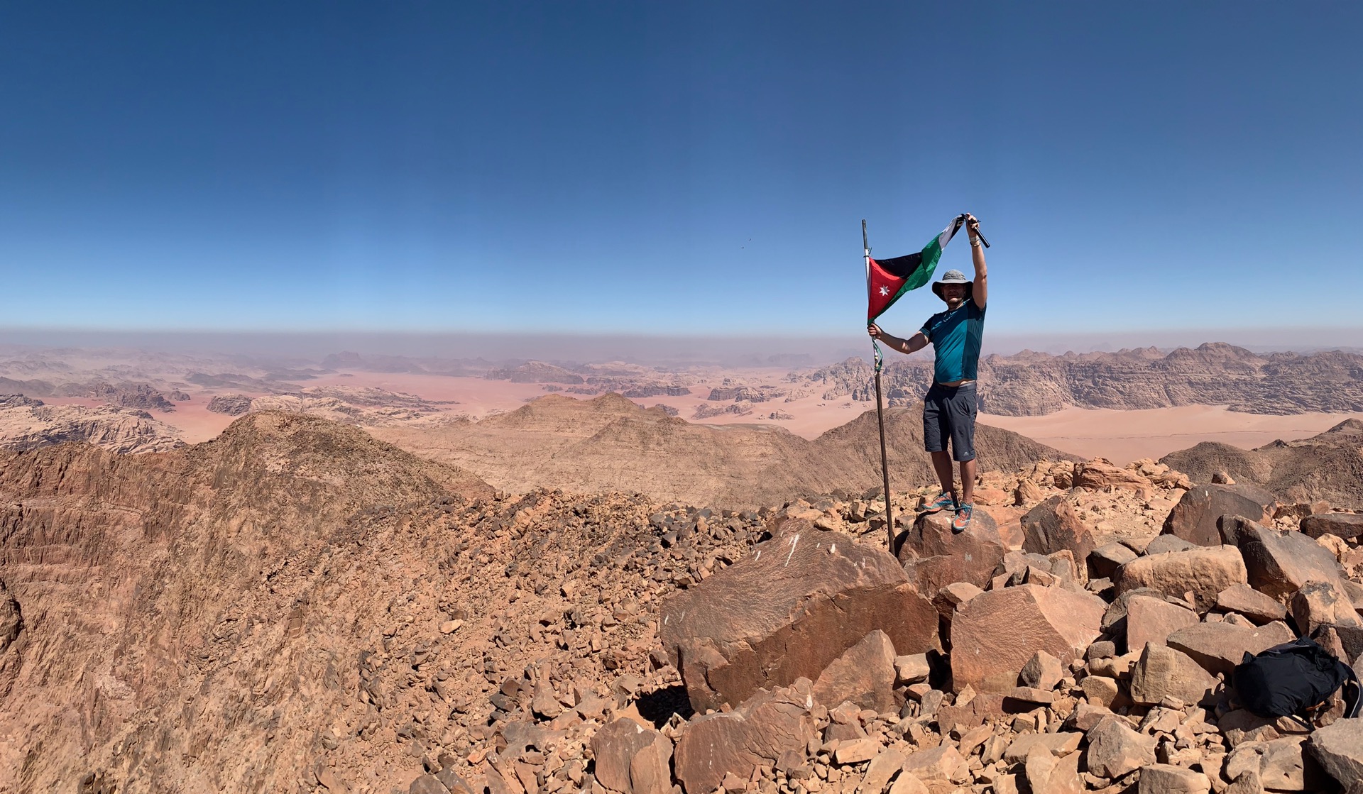 At 1,854 metres, Jebel Umm Adami is the highest peak in Jordan. Sited to the south of the Wadi Rum, near the Saudi border, the prospect of climbing a mountain in the desert heat was rather daunting so a morning breeze was welcome. An hours drive through the desert brought us to the base of the climb – we were already at an altitude of over 1,500 meters and so the climb itself was a relatively straightforward. After 90 minutes of clambering and plodding we found ourselves on the summit with amazing views over the Wadi Rum to the north and Saudi Arabia to the south, though Aqaba and the Red Sea to east were obscured by a slight haze. The descent was just over an hour and after a lazy lunch, followed by a welcome snooze, we were back in Beyond Wadi Rum camp by mid-afternoon for a welcome shower and freshen-up.